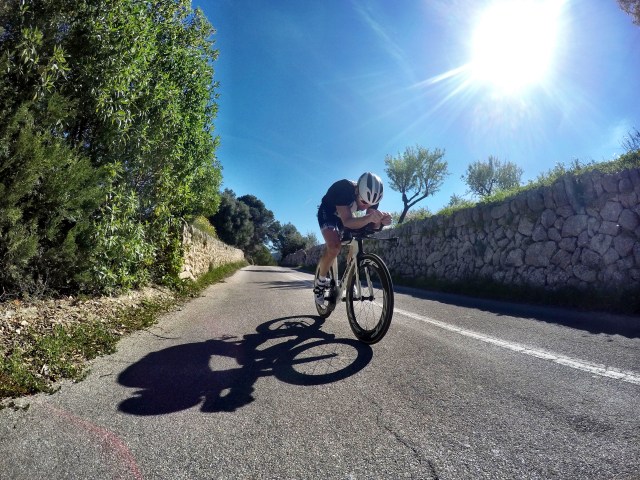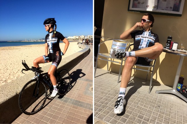Ironman Sør-Afrika nærmer seg med stormskritt. Det er i dag under tre uker til Lars Petter og jeg skal i ilden på fulldistansen. Vi har løpt og svømt bra i hele vinter, og tilbrakt mye tid på terrengsykkelen ute i helgene. Men temposyklingen har derimot, og naturlig nok, foregått på rulla i form av kortere intervalløkter. Langturer på temposykkelen har vi ikke hatt siden vi var på Hawaii i oktober. Da det begynte å gå opp for oss hvor få treningsdager det faktisk er igjen til konkurransen, hev vi oss rundt og tok en langhelg til Mallorca i helgen som var. Vi så at værmeldingen så fantastisk bra ut, så da lå alt til rette for å få mange mil og timer på temposykkelen på tørre og fine veier. Vi booket oss inn på Hotel Helios på Playa de Palma, og fikk tre hele sykkeldager i sykkelparadiset. Vi kunne virkelig ikke vært heldigere med været enn vi var! Kort-kort tidlig i mars er heeelt ok. Vi logget 36 mil og nesten 15 timer på sykkelsetet de tre dagene, og selv om vi gjerne skulle vært der lenger og syklet mer på temposykkelen før konkurransen, gir det i alle fall litt trygghet å vite at vi har hatt noen langturer i krumbøyd posisjon før det braker løs.