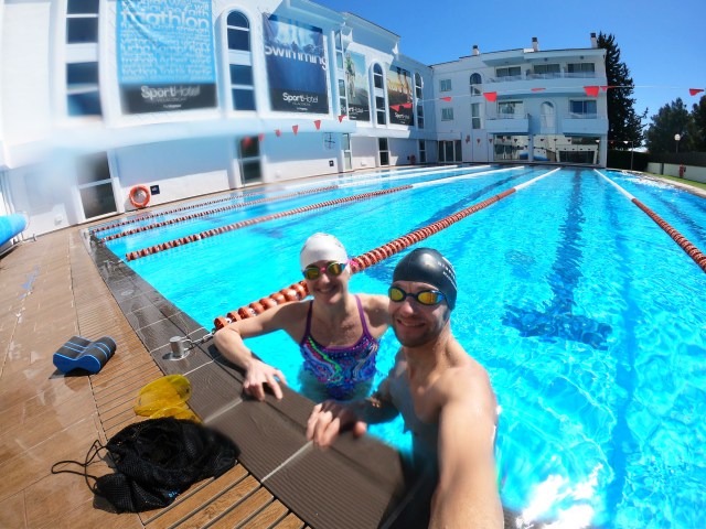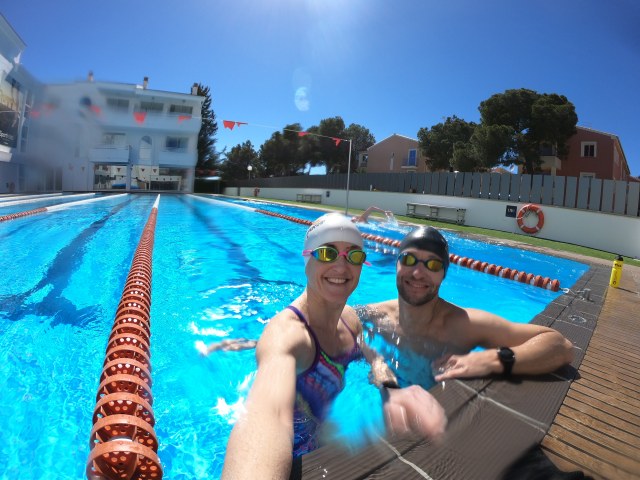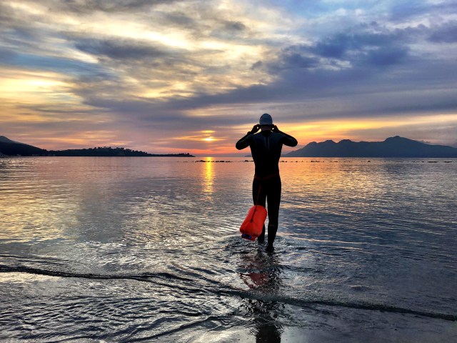 Dag ni startet med morgensvøm i sjøen. Det har vært skikkelig choppy de siste dagene, så håper sjøen roer seg litt før konkurransen. Det ser ganske ok ut på filmen, men det føles som om vi svømmer oppover og nedover i bølgene: