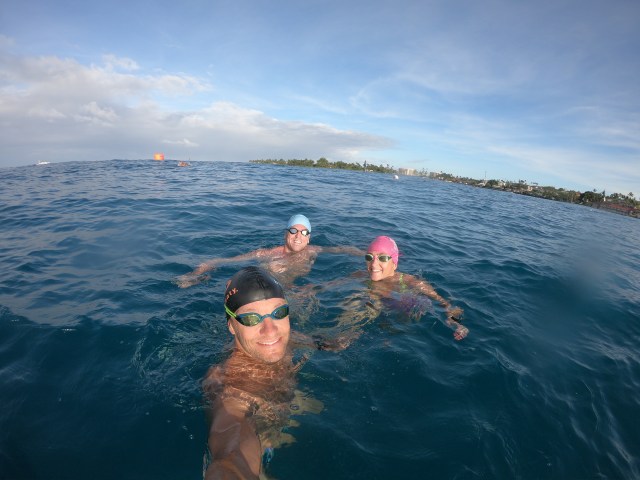 På dag sju var det klart for Hoala training swim – en svømmekonkurranse som går i VM-traseen. Det var 650 startende, så denne konkurransen er en veldig fin gjennomkjøringen før dagen det virkelig gjelder. LP svømte på 55 min, Jarle på 1:05 og jeg på 1:10. Fem minutter for sakte for min del, men det var mye bølger og det er og blir veldig tungt og uvant. Går for bedre tid på lørdag :-)