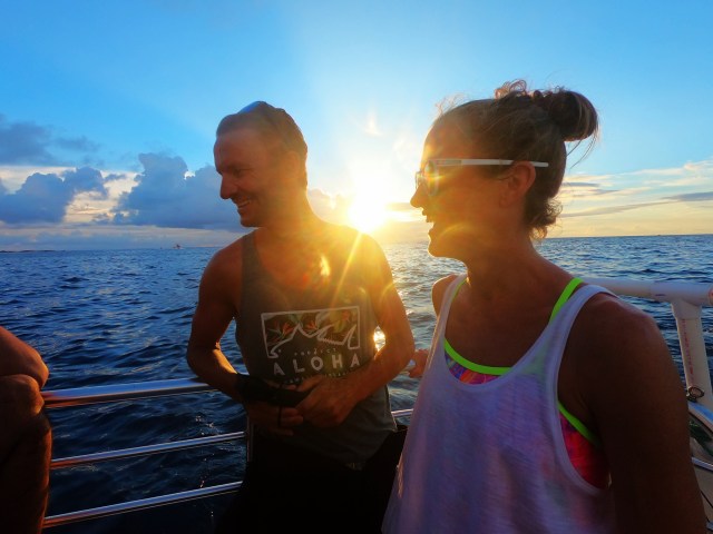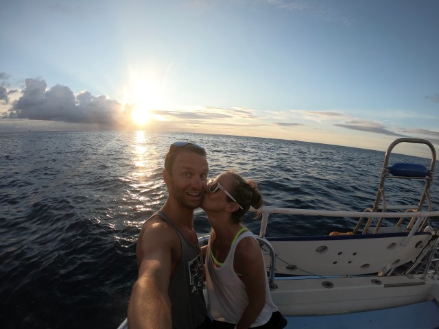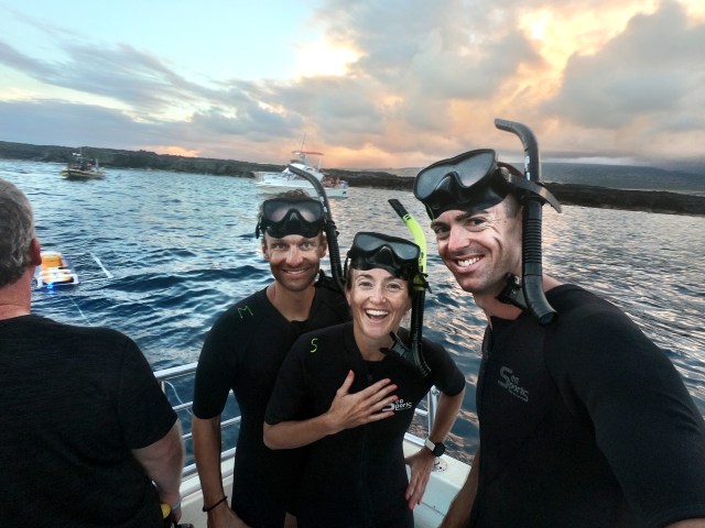 På kvelden dro LP, Jarle og jeg på en guidet Manta Ray-snorkleekspedisjon sammen med foreldrene til Lars Petter. Det var en helt rå opplevelse. Vi dro ut med båten rett før solnedgang og hoppet ut i vannet rett før det ble mørkt. Vi holdt oss til et surfebrett som hadde påmonterte lys. Lyset tiltrekker seg plankton som igjen tiltrekker seg de fantastiske manta raysene. Vi lå musestille med snorkel og dykkermaske og tittet ned på de vakre og fredfulle skapningene i nesten en time.