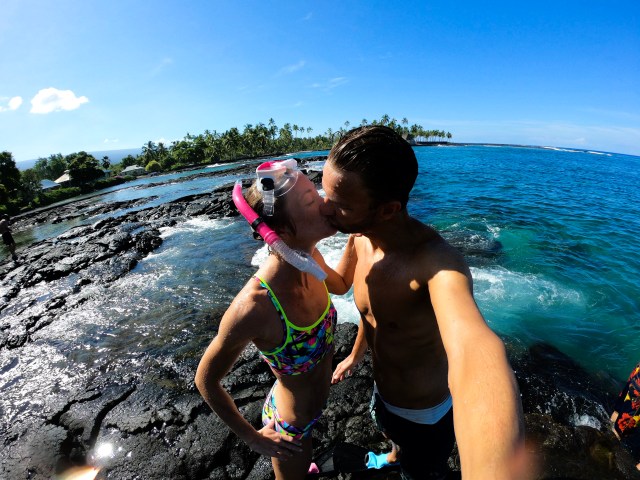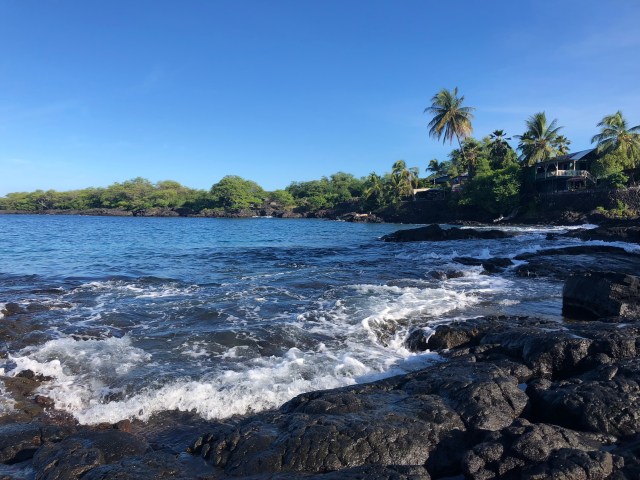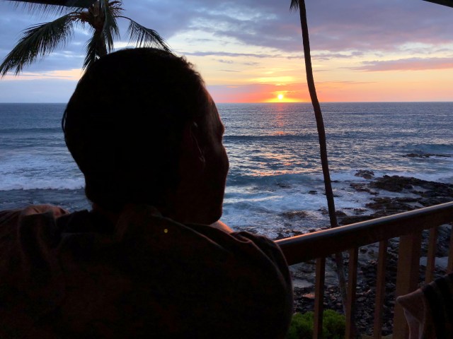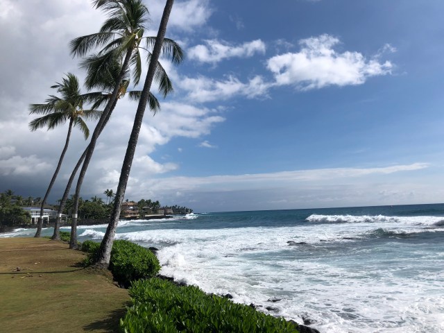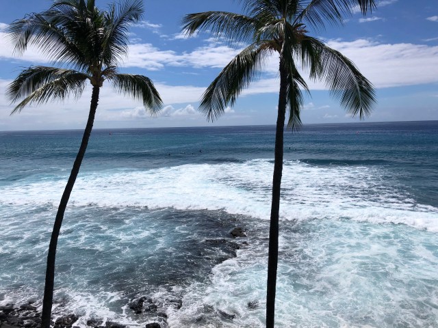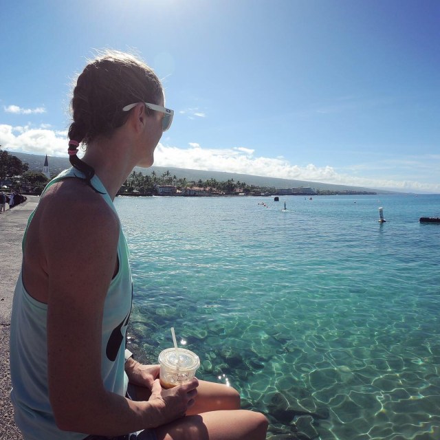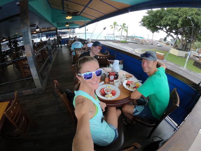 Dag 1 startet med frokost på Splashers Grill i sentrum av Kona, før vi hoppet ut i Stillehavet. Det var hele 28 grader i sjøen :-) Helt herlig! Etter svømmeturen ble det en liten trilletur på Queen K for å vekke til live slitne og hovne reisebein. Det er litt uvirkelig å være tilbake og vi føler oss veldig heldige.